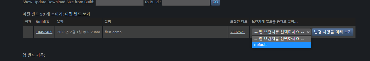 ㄹ. [변경 사항을 미리 보기]를 누르면 나오는 화면에서 [지금 빌드 공개하기]를 누른다.