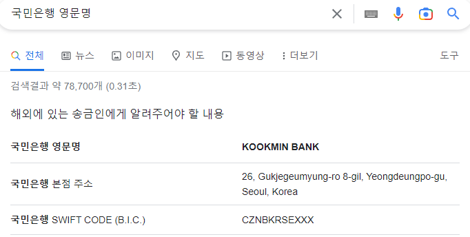 은행의 이름 및 주소, swift code등을 적어야하는 란이 있는데