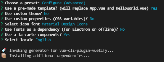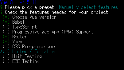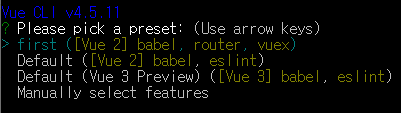 기존 내가 만든 셋팅, vue 권장 셋팅, manually로 직접 셋팅하는 선택지가 주어진다.